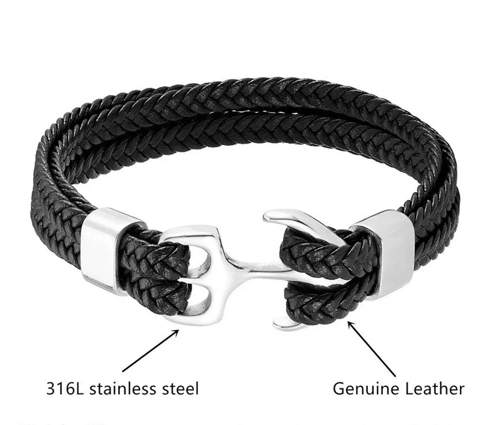 Braided Leather Black Bracelet with Stainless Steel Clasp